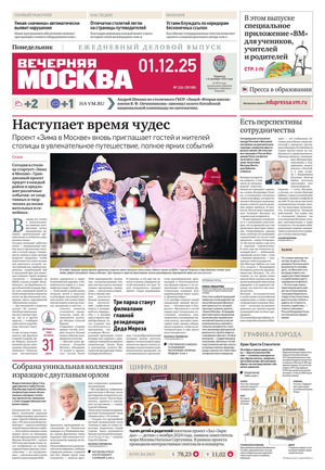 «Вечерняя Москва» — ежедневная российская вечерняя газета, старейшее из вечерних изданий в России, учрежденное в 1923 году. Выходит пять дней в неделю, кроме субботы и воскресенья. Отличается тем, что рассказывает о событиях еще не завершившегося дня. Оперативно освещает хронику и особенности жизни Москвы, охватывает все слои общества и большинство профессиональных и возрастных групп читателей.Издание представлено тремя выпусками – утренним ежедневным, вечерним (выходит три раза в неделю), еженедельным (выходит по четвергам).